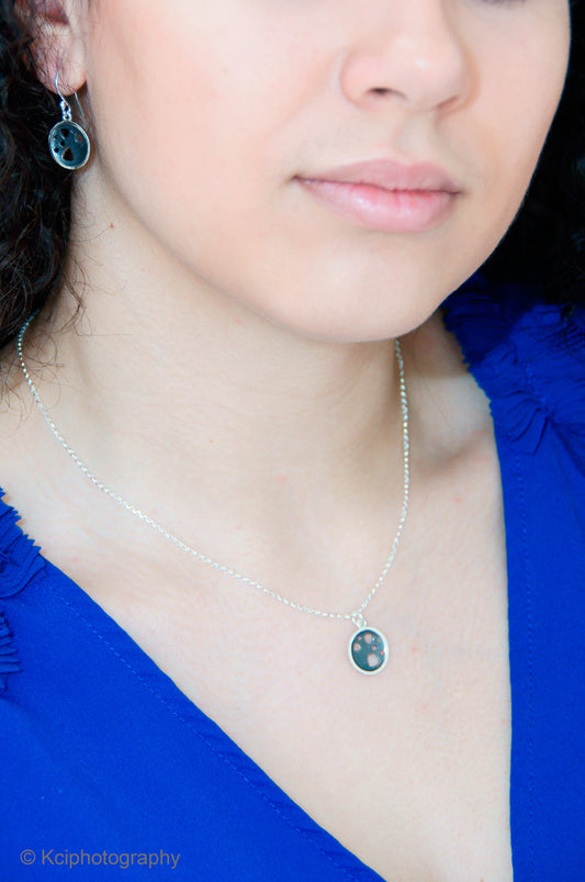 Domed circle necklace oxidised reversible silver