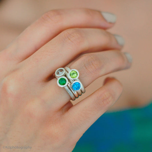 Green cubic zirconia scattered trillions stacking ring - made to order in your size